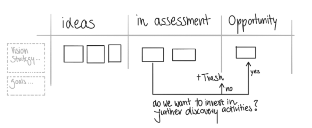 For now, let’s keep it practical, as roadmaps are a topic on its own. Where do you visualize the idea? You can use an idea board, which represents how an idea becomes an opportunity.